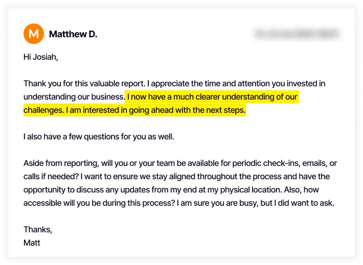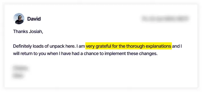 After you’ve scheduled a meeting with me, we’ll discuss your needs and whether I can help you with an audit. After that, I’ll book you in for a day to work on your audit. I deliver all of my audits on the same-day for your convenience, unless something unexpected were to come up, which hasn’t happened once in the history of the business.