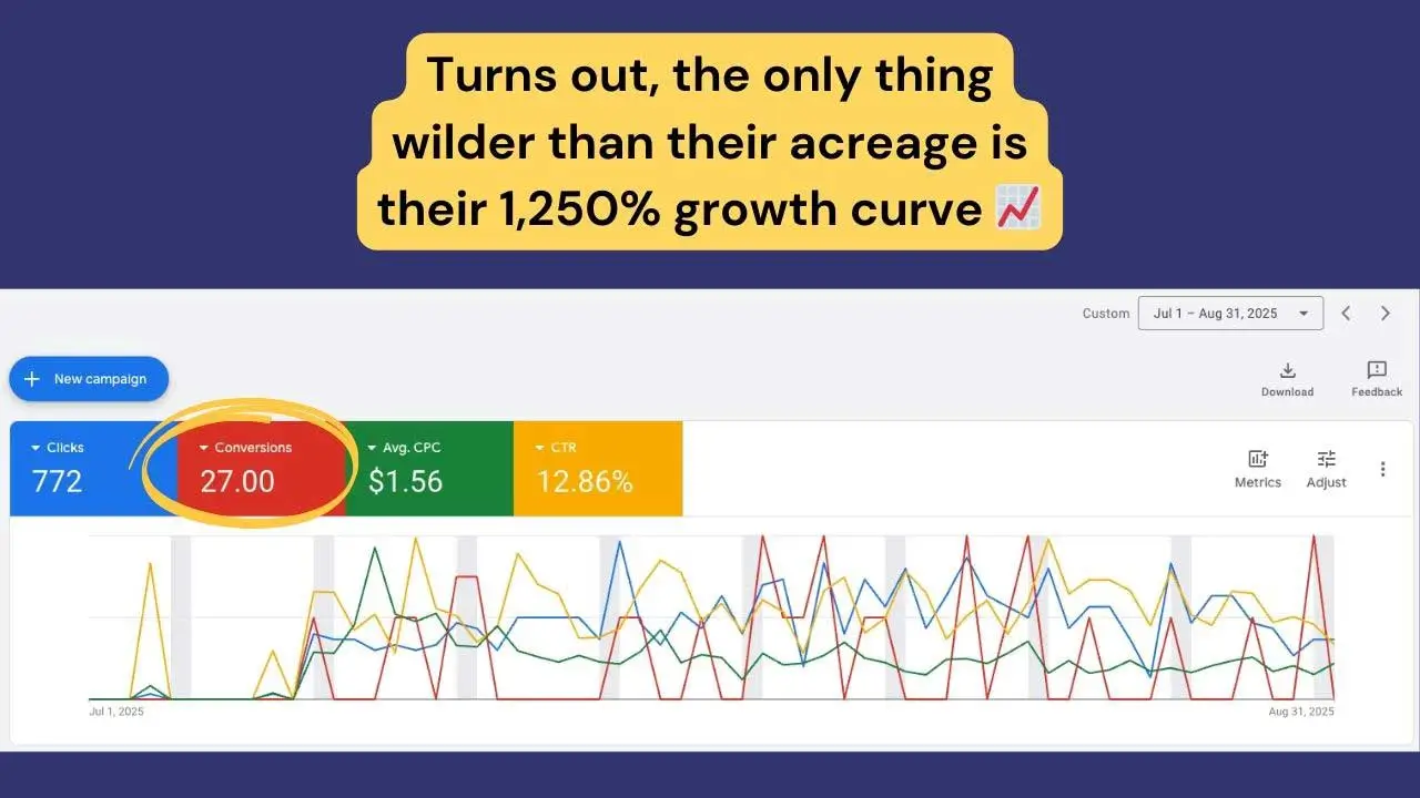 The same $25 a day was now producing real conversations with our proven paid search strategy. Real conversions jumped 1,250% within two months: from 2 genuine leads to 27 solid ones.