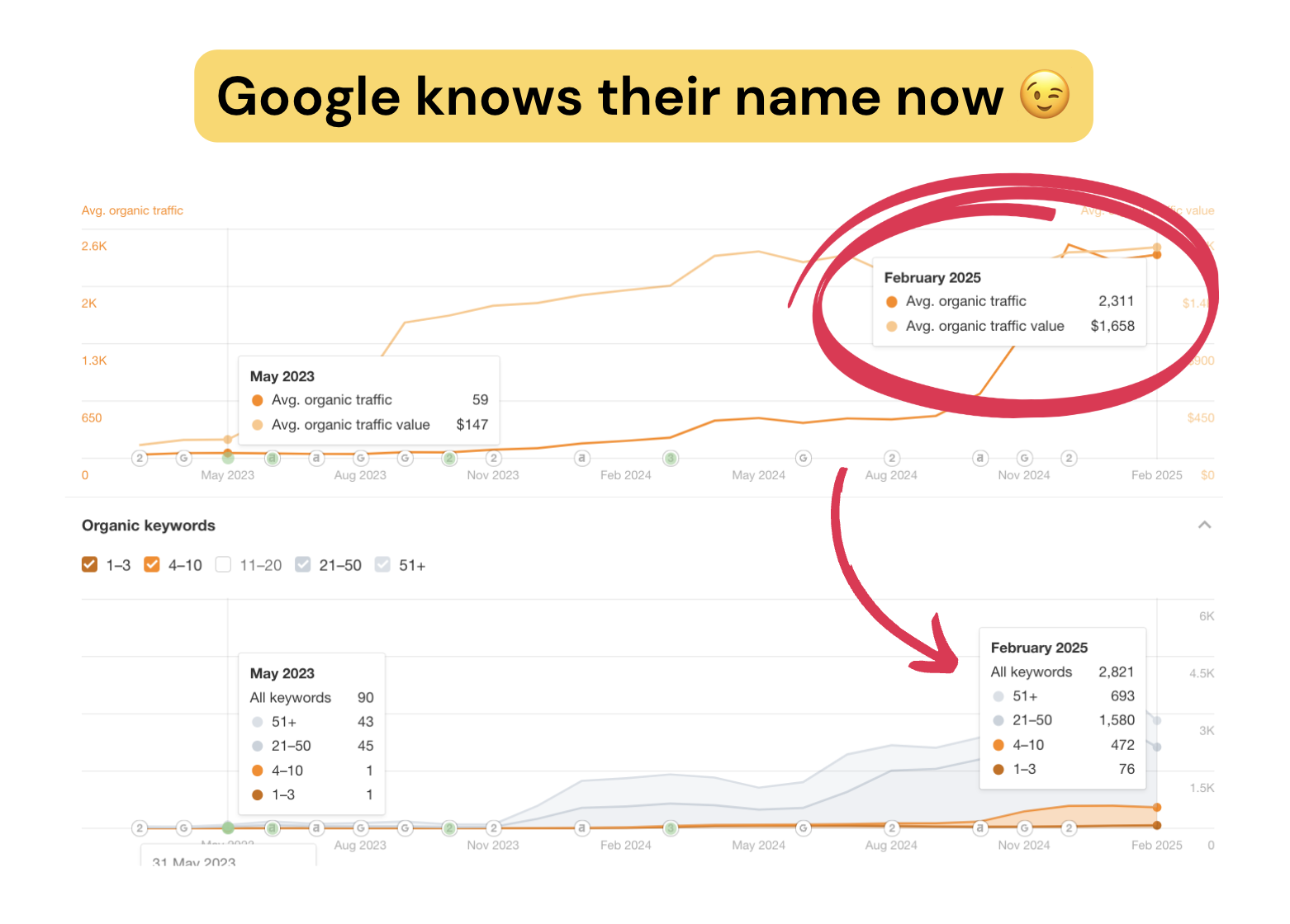 When everything came together, the change was massive. After more than a year and a half of SEO work, their site went from showing up for just a few terms to ranking for over 3000% more keywords. This meant they were finally appearing when people searched for what they offered. But it wasn’t just about more visibility. The goal was to keep their pipeline full by reaching people ready to invest in high-quality, custom cabinetry. Their organic traffic skyrocketed by over 3800% since working with us, bringing in an average of 1,800 potential customers month after month. And because these visitors were actively looking for cabinet makers, they were much more likely to become paying customers. On the paid ads side, the improvements made a huge impact. By focusing on high-intent searches and fine-tuning every detail, we helped them hit a 165% return on ad spend (ROAS) within 6 months. More than seeing better numbers, it gave them confidence that their marketing budget was finally working as hard as they were. Instead of guessing where their money was going, they could finally see real results that directly impacted their business.